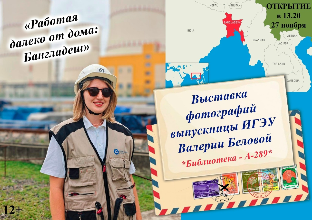 Выставка фотографий Валерии Беловой, выпускницы вуза, инженера «Смоленскатомтехэнерго», работающей на строительстве АЭС «Руппур» в Народной Республике Бангладеш, приурочена к 80-летию атомной отрасли и организована Библиотекой вуза при поддержке кафедры атомных электрических станций.