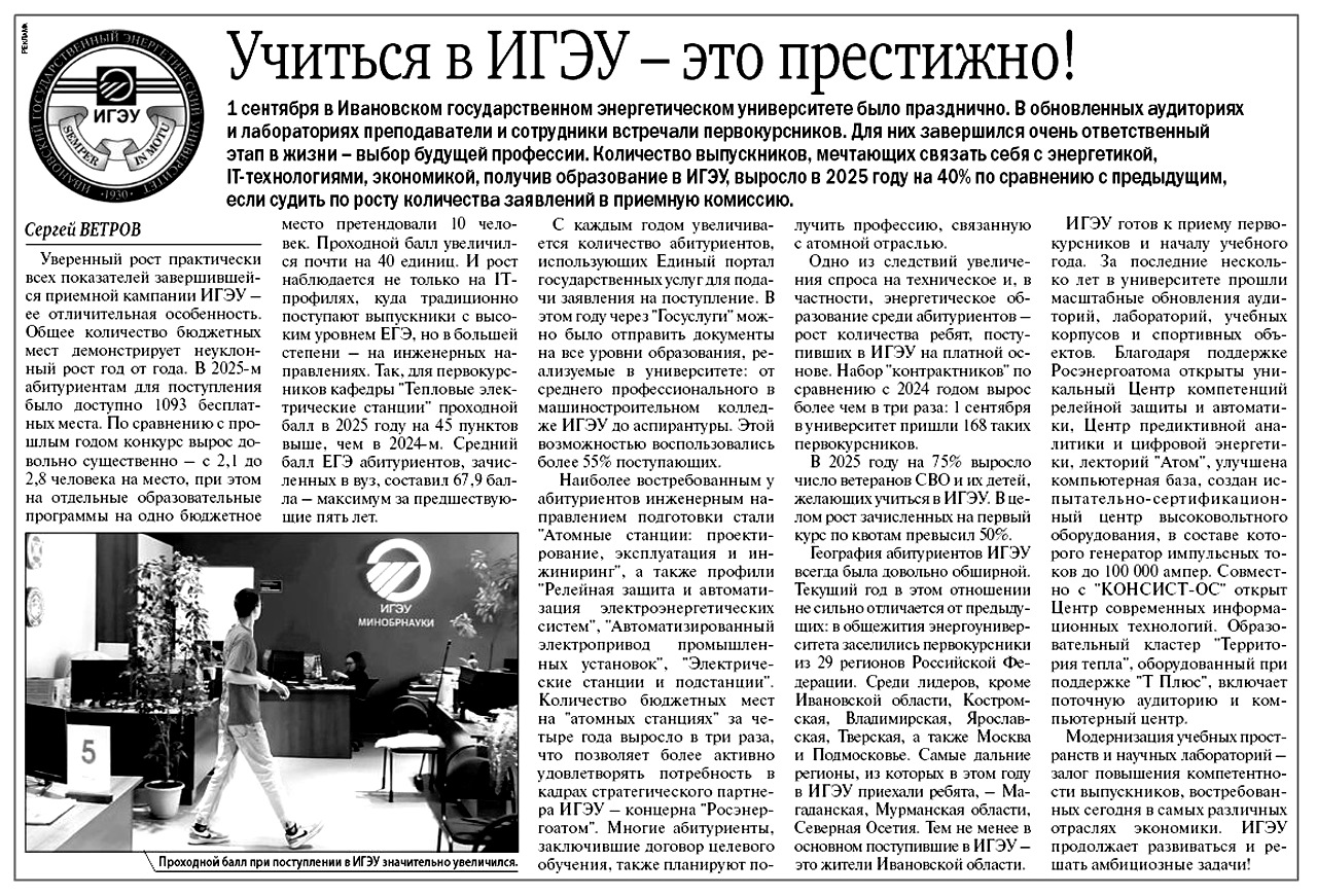 Отличительная особенность приемной кампании ИГЭУ в 2025 году – уверенный рост практически всех показателей.