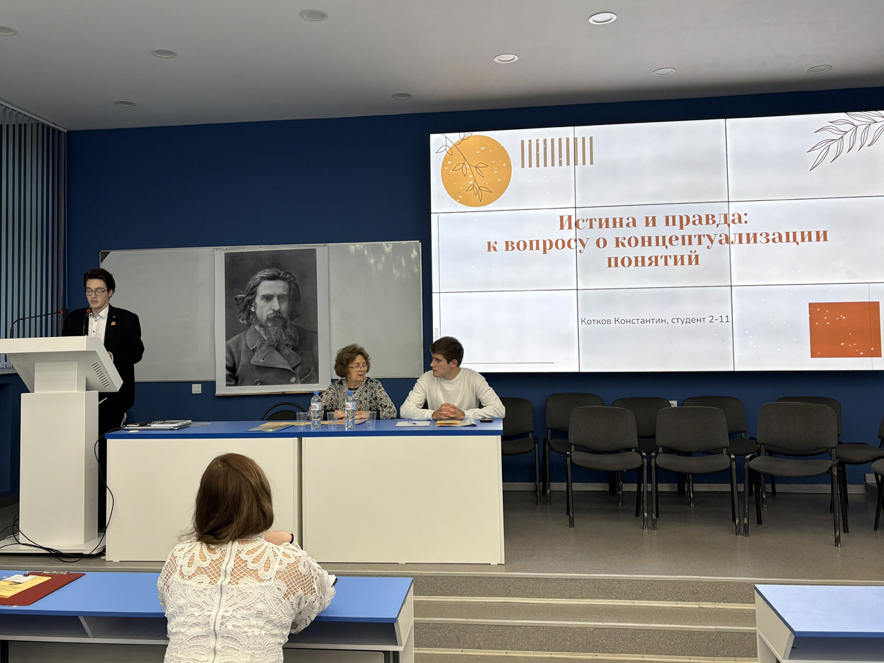 Руководители секций – авторитетные ученые и философы: доктор филологических наук, профессор Н.В. Дзуцева (ИвГУ), доктор философских наук, профессор М.В. Максимов (ИГЭУ), заведующий кафедрой истории и культурологии, доктор филологических наук, профессор Д.Л. Шукуров (ИГХТУ), заведующий кафедрой философии ИвГУ, доктор философских наук, доцент, Д.Г. Смирнов (ИвГУ), кандидат философских наук, доцент Л.М. Максимова (ИГЭУ), аспирантка Финансового университета при Правительстве Российской Федерации У.П. Благовещенская, студент 2 курса ИФФ ИГЭУ Н.В. Дубниченко.